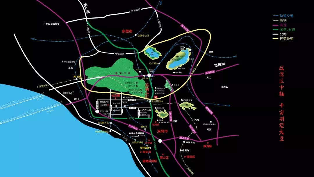 3分钟之内直上广深及虎岗两大高速,30分钟内可达深圳宝安机场及广州南沙;