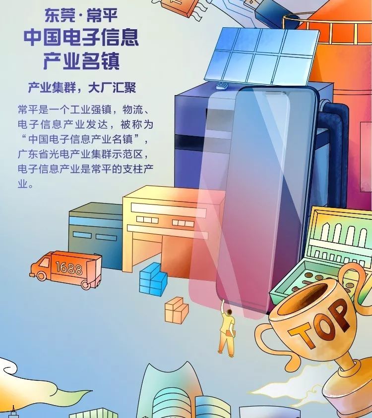实现制造业强国,显然不能仅仅依赖简单的技术加工,电子信息产业的长足发展尤为重要。而在工业强镇东莞·常平,电子信息产业已成为当地的支柱产业,大厂汇聚,物流、电子信息产业发达,被称为“中国电子信息产业名镇”,也是广东省光电产业集群示范区。