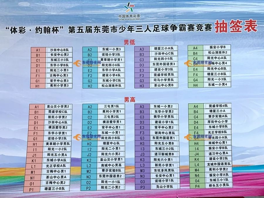男子低年级组、男子高年级组抽签结果