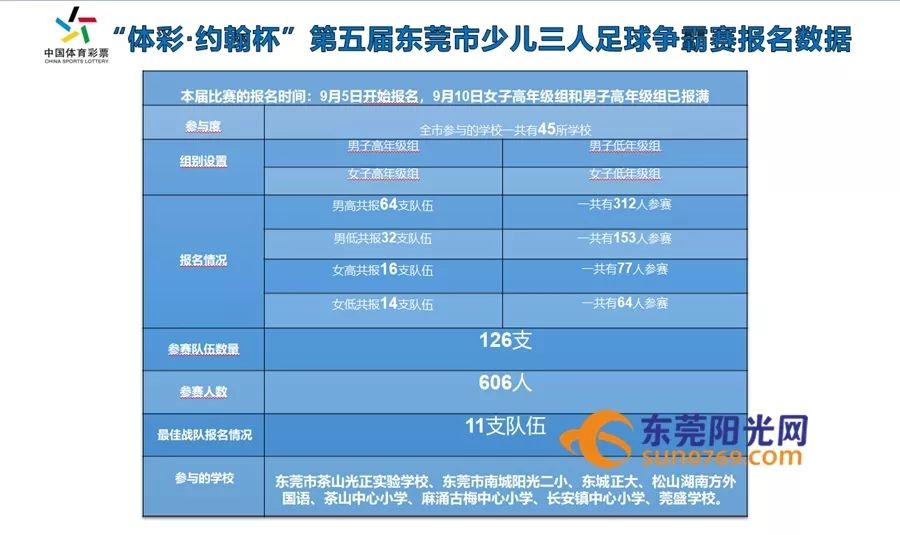 东莞市少年三人足球争霸赛经过近几年的发展,参赛选手的水平越来越高,各学校的参赛积极性也逐步提高,对于推动青少年校园足球发展具有标杆作用。