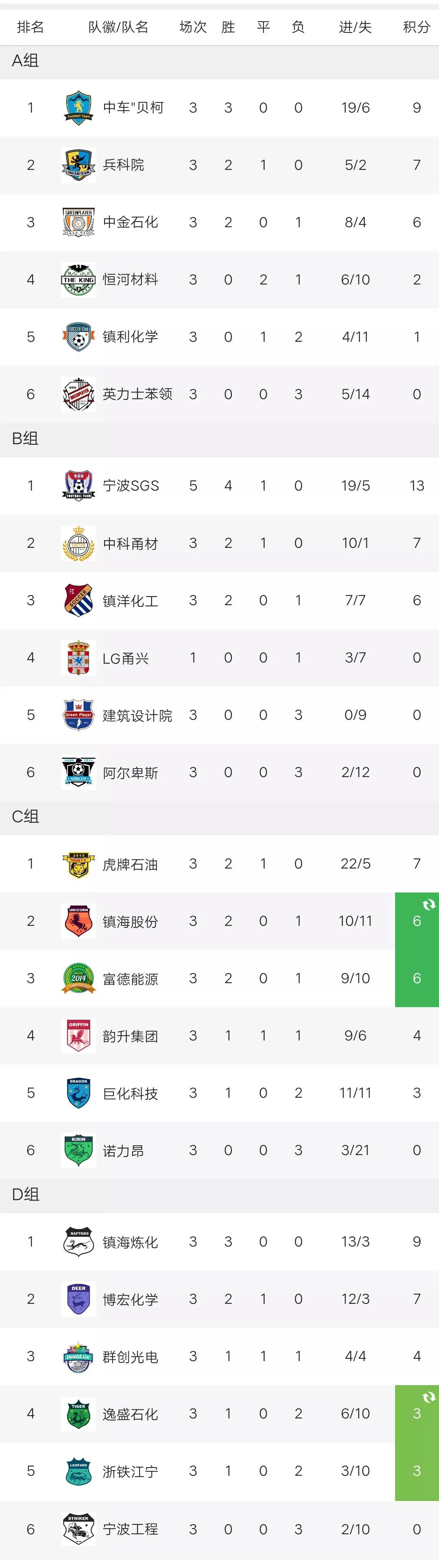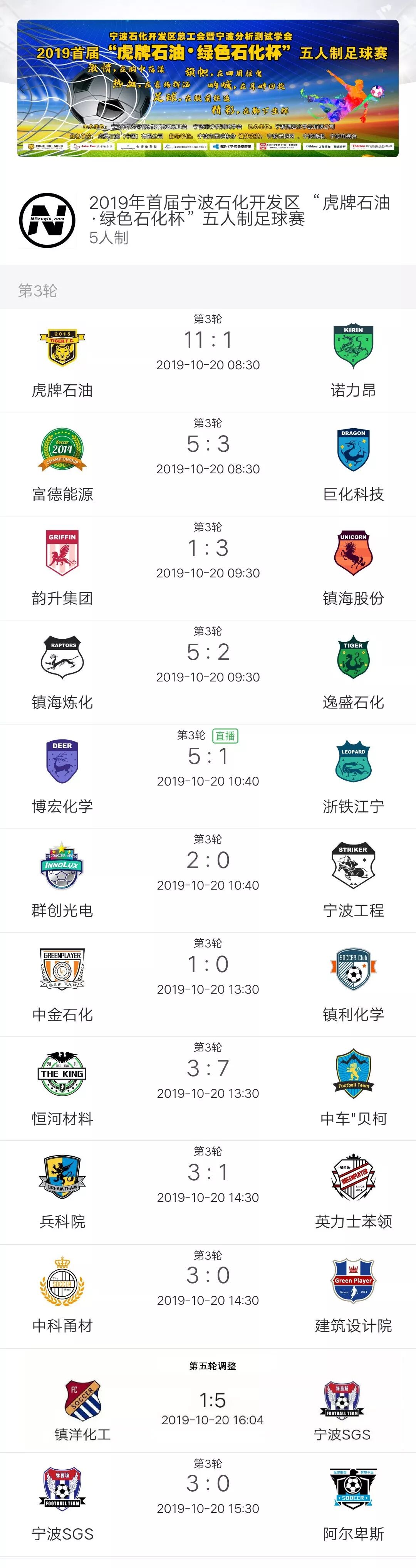 2019年首届宁波石化开发区 “虎牌石油·绿色石化杯”五人制足球赛第三轮战报、积分、图片