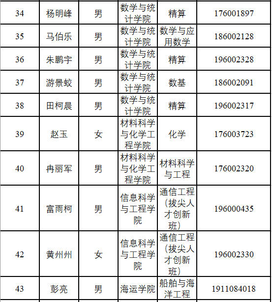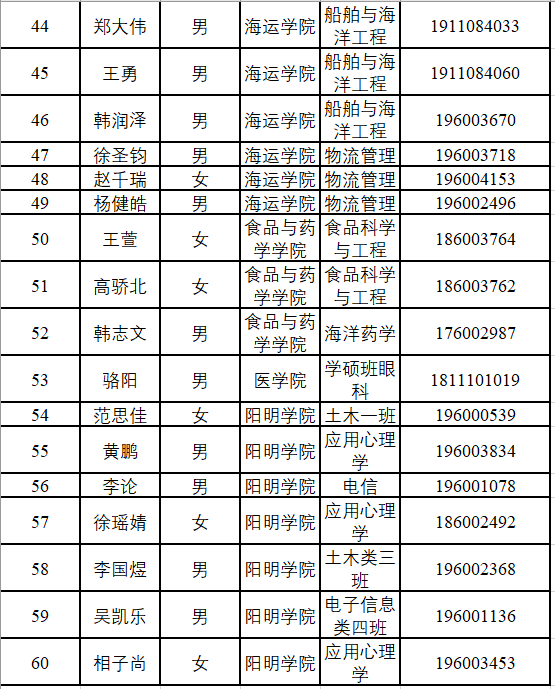 经自主报名、学院推荐、资格初审、专家书面评审等环节,宁波大学创新创业学院2019年第三期第一阶段创业班学生选拔结果已经产生,共录用60名,具体名单如下: