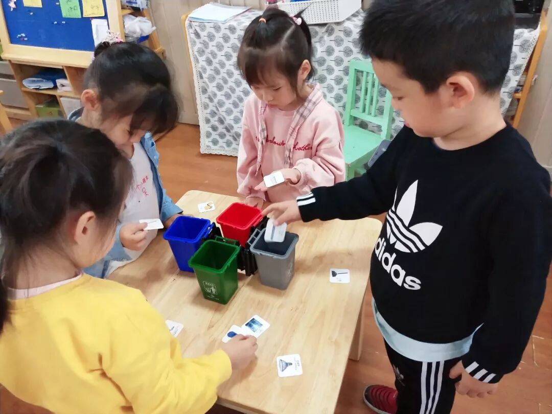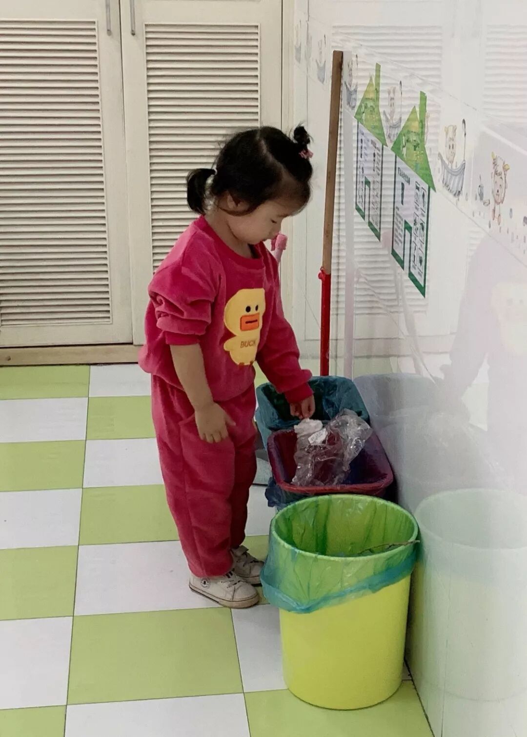 带孩子寻找幼儿园户外垃圾桶,看看有什么变化。