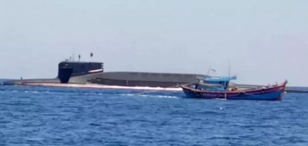 国外社交媒体10月17日曝出一张据称是越南渔民拍摄的未经证实的照片。显示一艘094A战略核潜艇与一艘越南渔船似乎近在咫尺。