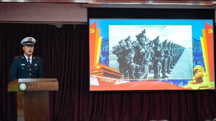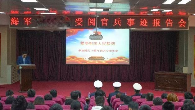 盛世阅兵的帷幕缓缓落下,但其精神传承仍在继续。10月18日下午,海军某大队受阅官兵事迹报告会在鲁东大学图书馆报告厅举行,海军某大队王圣杰,王海洋,李德昭三位受阅官兵分享了他们参加国庆七十周年大阅兵的感受和收获。报告会由鲁东大学团委副书记张杰主持。