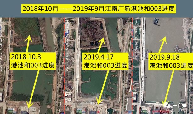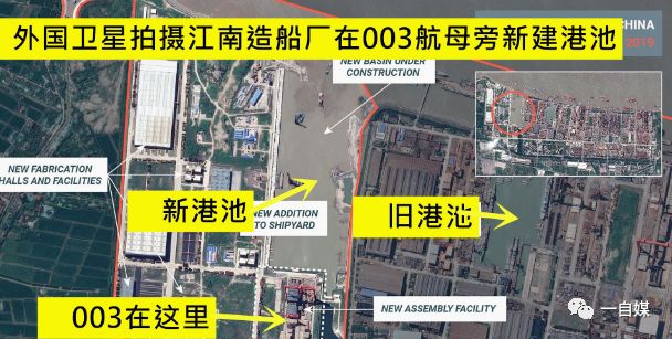 这样一来,随着近日003航母的卫星图片曝光,似乎003航母的建造进度异常顺利。图片上可以看到上海江南造船厂又在003建造地不远新建了一个大型港池,