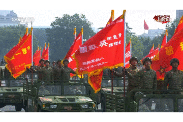 在中华人民共和国成立70周年阅兵分列式上,由全军荣誉功勋部队代表组成的战旗方队亮相。五大战区指挥员挺立排头,30辆猛士车载着解放军历史上涌现的100面荣誉战旗迎风招展,浩荡而来。其中就有临泉籍战士王快乐驾驶着QN104战车,毫厘不差地通过天安门广场,接受党和人民的检阅。