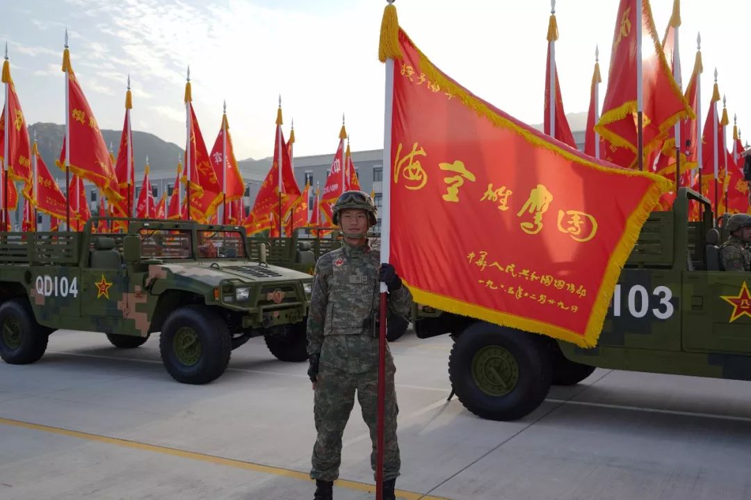 9月30日晚9时50分,王快乐和战旗方队的队员们从阅兵村出发前往长安街,做好10月1日正式上场受阅的准备。