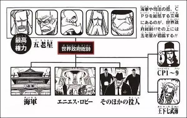 首先我们来看下下面的ZF层级图。除了伊姆,五老星是最高指挥者。这五个老头掌管着海军,CP和海底大监狱。而其中间接指挥的就是三军统帅。空是一个非常神秘的角色,地位仅次于五老星!空的权利也非常大,掌管着所有的海军力量!