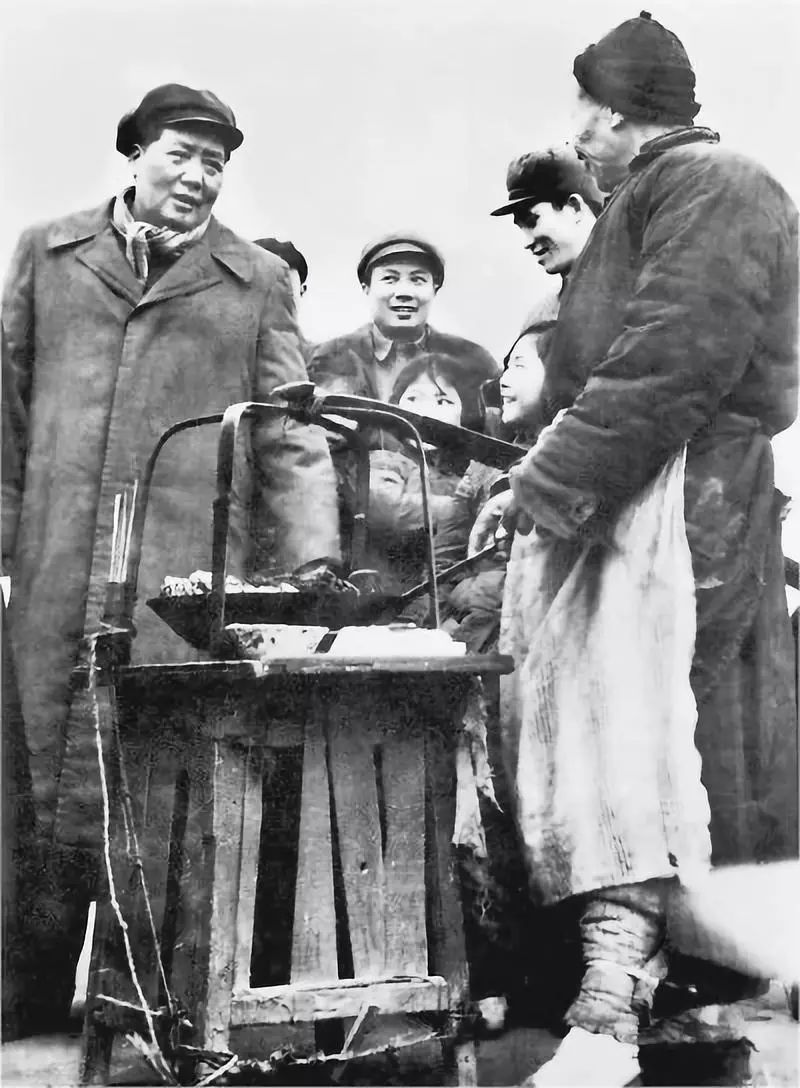 1953年大年初三,毛主席在蛇山黄鹤楼遗址附近与街头小贩交谈。