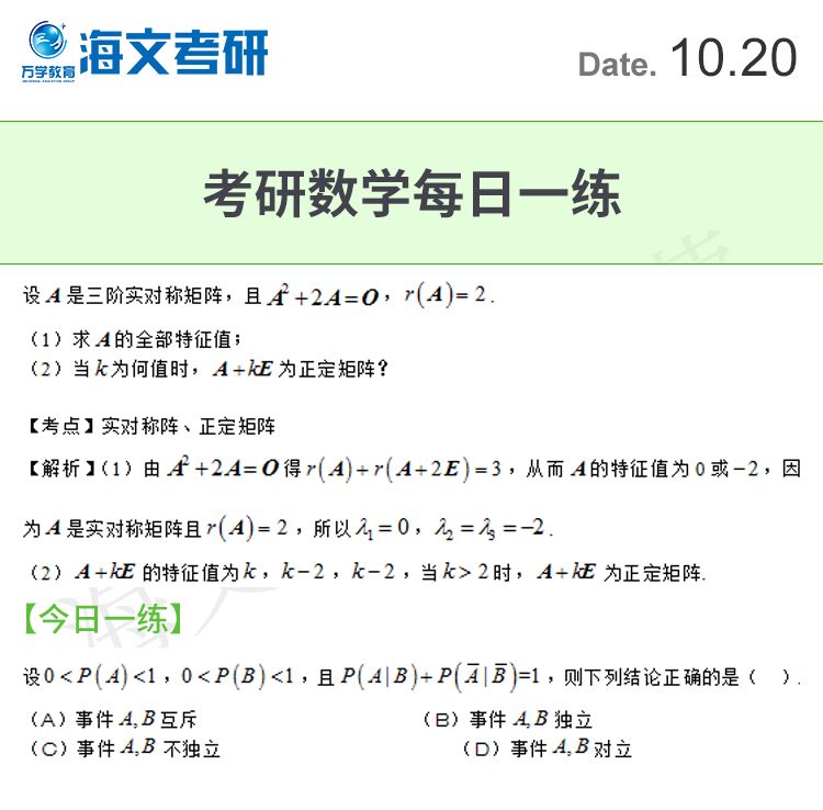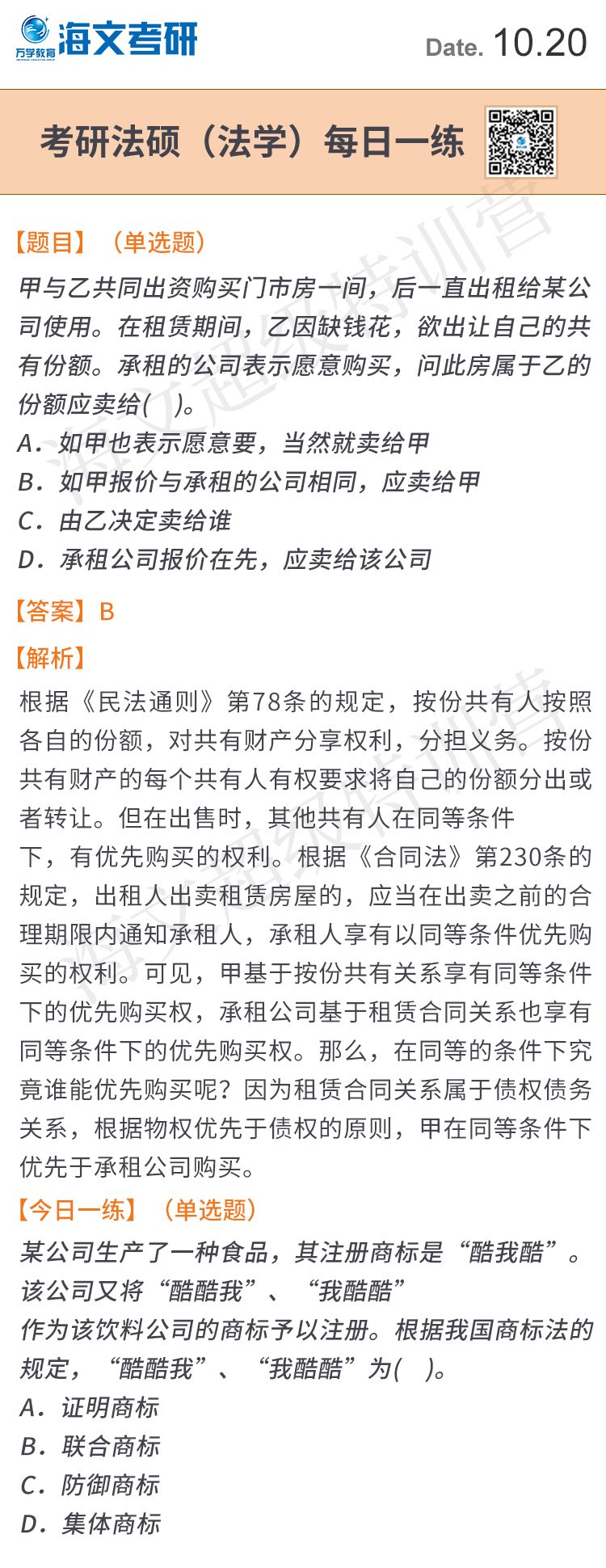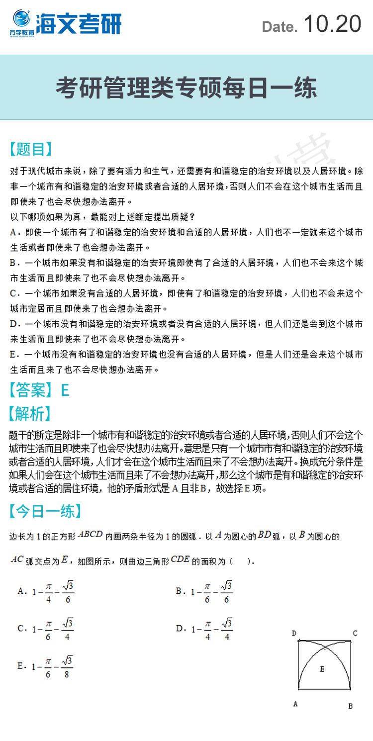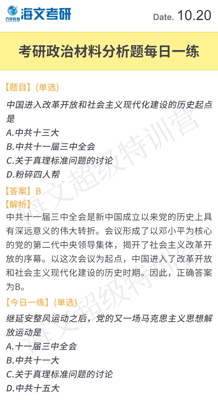 海文考研推出的“每日一练专栏”,有英语、政治、数学、法硕、管理类和西医。当天发布模拟真题,次日公布解析答案,欢迎一起探讨!加油!
