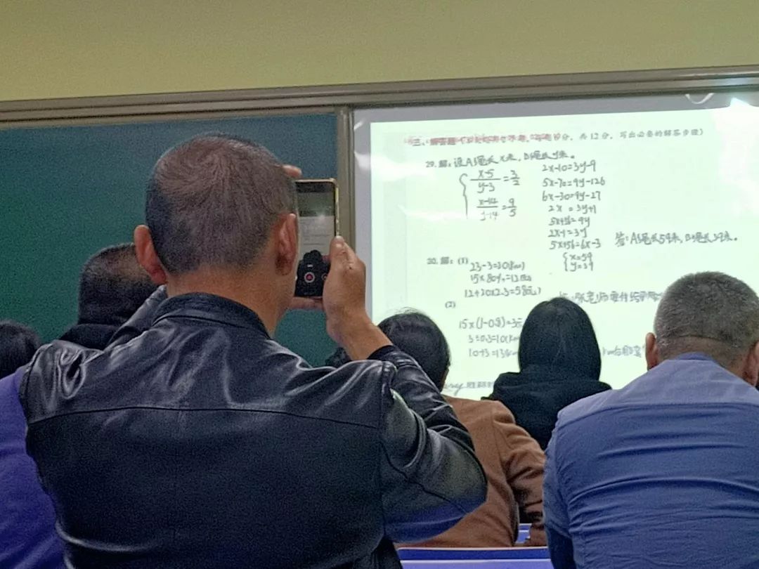 《解读月考 赢战期中》讲座开始,张老师为家长们进行专业的讲解,家长认真聆听。张老师讲到关键之处,家长们纷纷拿出手机拍照记录。