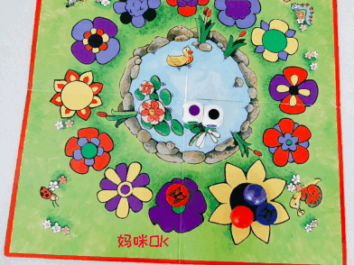 1、每人选一个小蝴蝶棋子和相同颜色的标记石头,以向日葵为起点,顺时针方向移动蝴蝶。从年龄最小的玩家开始,其他玩家按照顺时针方向依次进行。2、同时抛两个骰子,观察骰子的颜色,和下一朵花(顺时针)的颜色比较。如果:如果骰子投到的颜色,前面的花朵上面一个都没有那么就只能待原地不动了,轮到下一位玩家玩。比如骰子投到了黄色和蓝色,而前面的花是由紫色和绿色组成的,按就只能把机会让给下一位玩家了。
