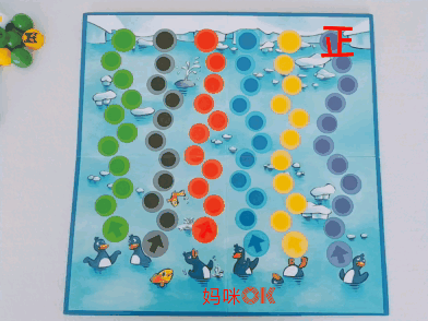 游戏玩法:1、根据玩家的数量,选择企鹅颜色。和上面的蜗牛一样,可以2人、3人或者4-6人玩。2、摆好棋子。从年龄最小的玩家开始,其他玩家按照顺时针方向依次进行。3、同时抛出两个骰子,开始走棋。自己选择,一个骰子颜色走企鹅,一个骰子颜色走浮冰(自己或者对方的)比如我的企鹅是黄色和紫色,投的骰子的颜色也是黄色和紫色(都是自己的),那么我就黄色企鹅走一步,紫色浮冰走一步;