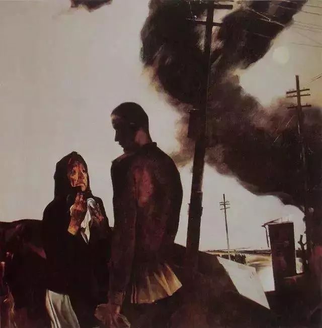 冷色调的背景,阴沉的天空这一切皆是对列宁格勒乃至于对全苏联在战争中死去的同胞们的悼念,这种纪念碑式的形式语言是在探求现代意识以及绘画中的统一,正是这种成功彻底将他的艺术创作道路打开。