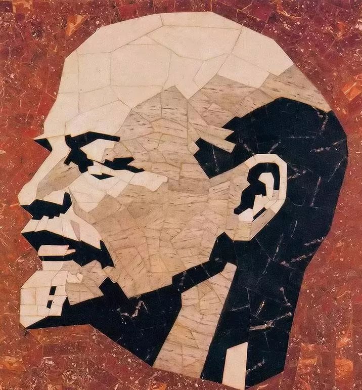 安德烈·梅尔尼科夫莫斯科克里木林宫大会堂创作的金属与石材等材质结合的巨型镶嵌壁画《列宁》,1961