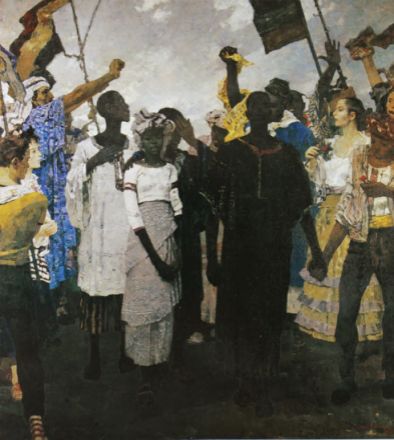 他的这次画作再一次的恰逢时代的主题,以至于后期创作的《丰收》《觉醒,争取和平与独立》《告别》等都受到政治以及时代背景的影响,也由此给与其创作的信心。