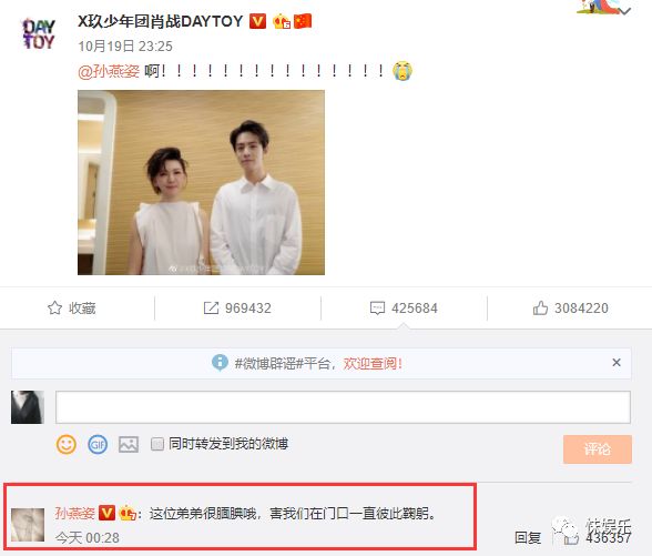肖战在微博晒出与孙燕姿的合照后,孙燕姿没隔多久就回复肖战:这位弟弟很腼腆哦,害我们在门口一直彼此鞠躬,肖战成名之后亦是如此的礼貌,此时小编有一个大胆的想法,难道这是相互崇拜才彼此鞠躬吗?或许只是礼貌的回应对方吧,不要多想不要多想O(∩_∩)O