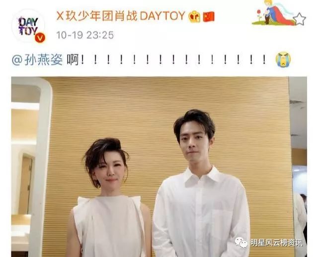 在秋季盛典当晚表演结束后,肖战兴奋地在自己的社交平台上,晒出他和孙燕姿的合影,配文也是土拨鼠尖叫般的文字:孙燕姿啊……,他还破天荒爱特了一下孙燕姿(不知对方后续会不会回应肖战一下)。