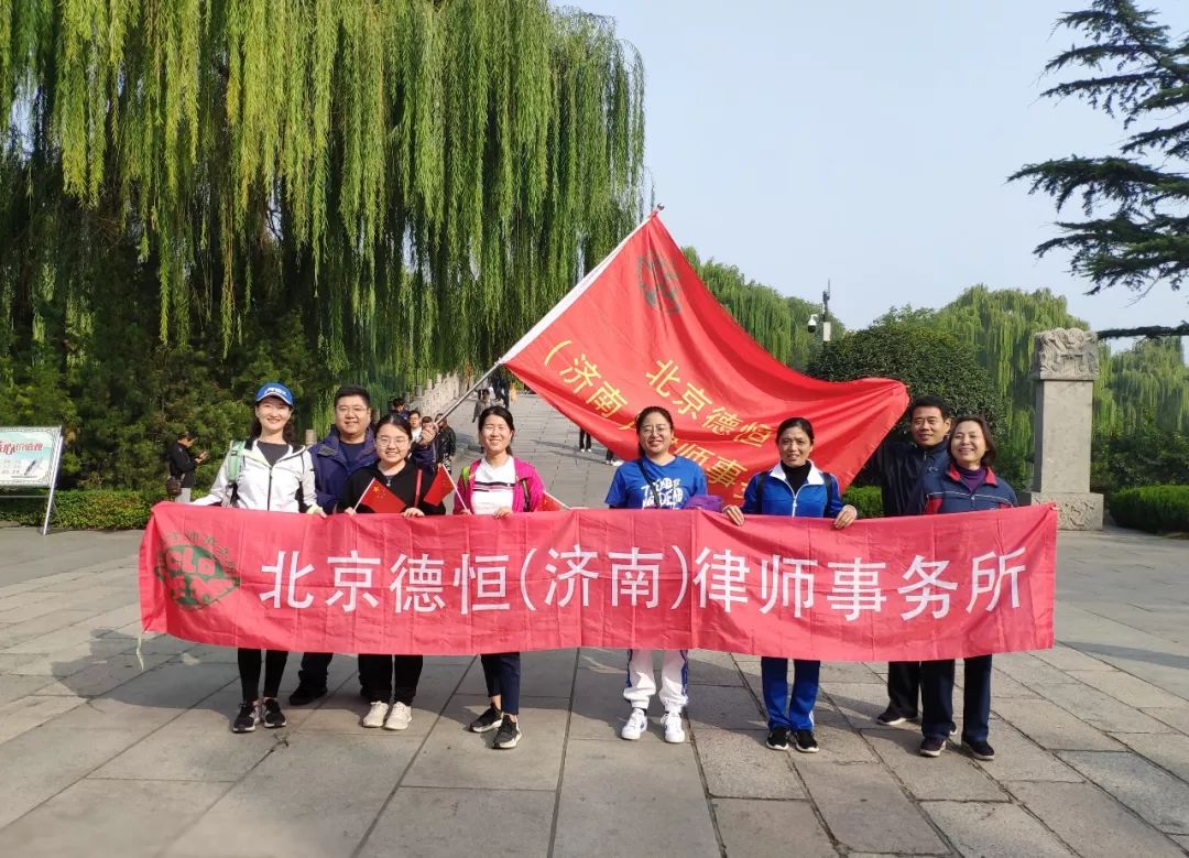 为庆祝新中国成立70周年和律师制度恢复40周年,贯彻落实全民健身国家战略,在律师行业倡导绿色健康生活方式。济南市律师协会在大明湖组织“我们走在大路上·山东律师金秋徒步行”活动。北京德恒(济南)师事务所积极响应,多名律师积极参与。