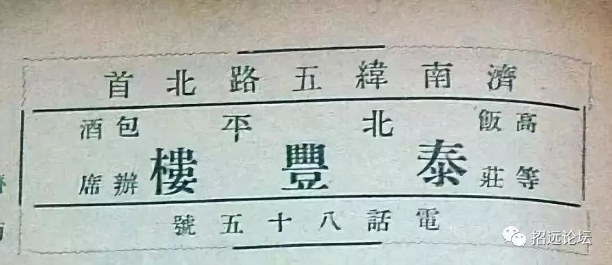 泰丰楼存续的33年,正是中国动荡时期,各色人物你方唱罢我登场。在济南的泰丰楼也是一个小社会,见识了各路人物,也见证了许多人物命运的起起伏伏、兴盛衰败。如文化名流胡适、冰心,都在日记中提起过在泰丰楼聚餐的情形,在山东任过省长、省主席的张宗昌、韩复榘也多次赴宴泰丰楼,更不用说济南的其他军政高官、富豪商贾。