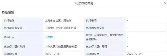 一波未平,一波又起,熊猫直播的风波还没完全过去,王思聪的公司又出事了:7月17日,王思聪在上海香蕉项目娱乐文化有限公司持有的270万元股份,自2019年7月15日至2022年7月14日冻结1095天;