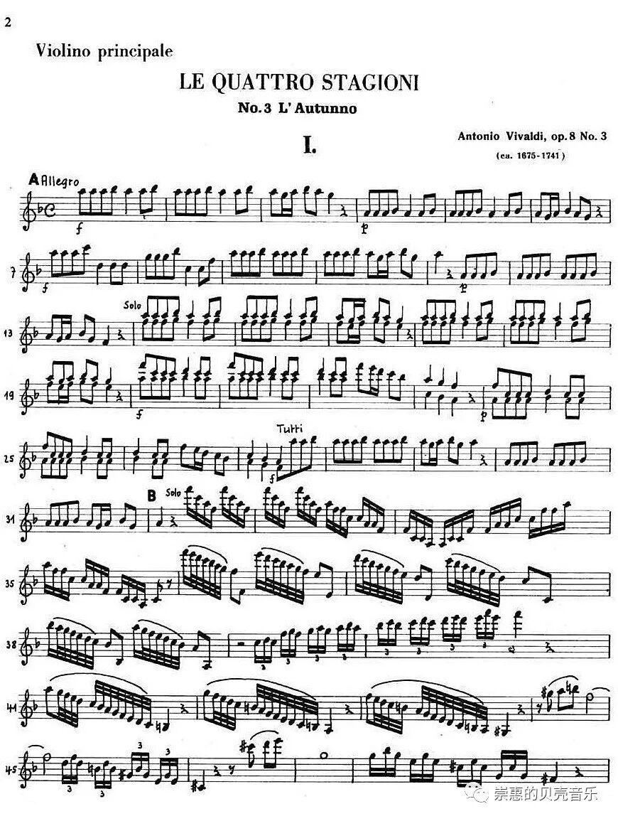 维瓦尔第《四季〝秋〞》作品.8, 第3号,独奏小提琴曲谱: