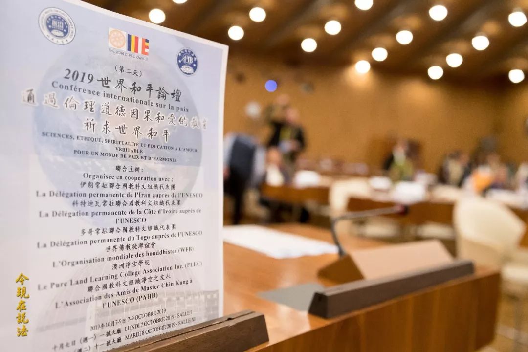 十月七日至九日「和諧世界和平論壇」在法國巴黎聯合國教科文組織總部舉行。此次論壇由「伊朗、科特迪瓦、多哥」三國常駐教科文組織代表團,以及世界佛教徒聯誼會、澳洲淨宗學院、淨空之友社聯合主辦。多國大使、專家學者、宗教代表以及全球和平愛好者,近千人參與盛會。