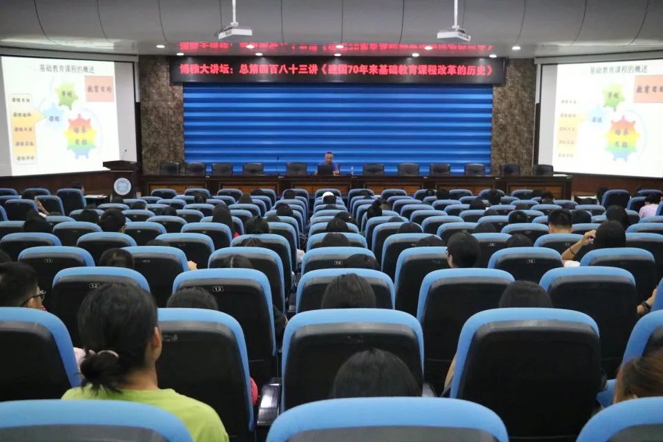 10月12日晚,我院于我校东校区学术报告厅召开建国70年来基础教育课程改革的历史讲座。我校2019级部分学生到场聆听,本次讲座由我院博士苏峻主讲。
