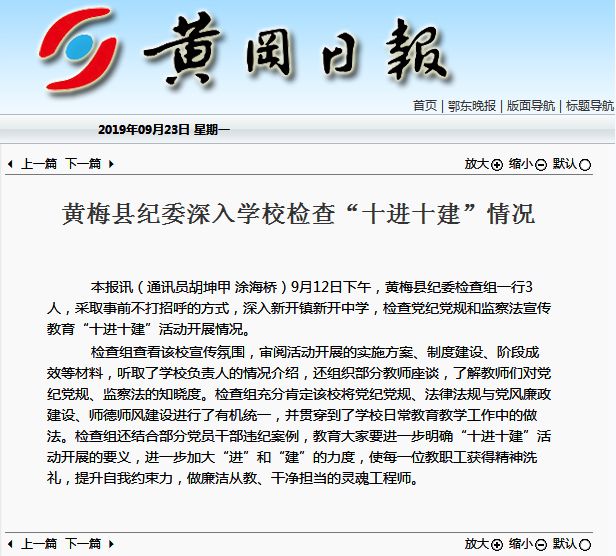 10、黄梅县纪委深入学校检查“十进十建”情况