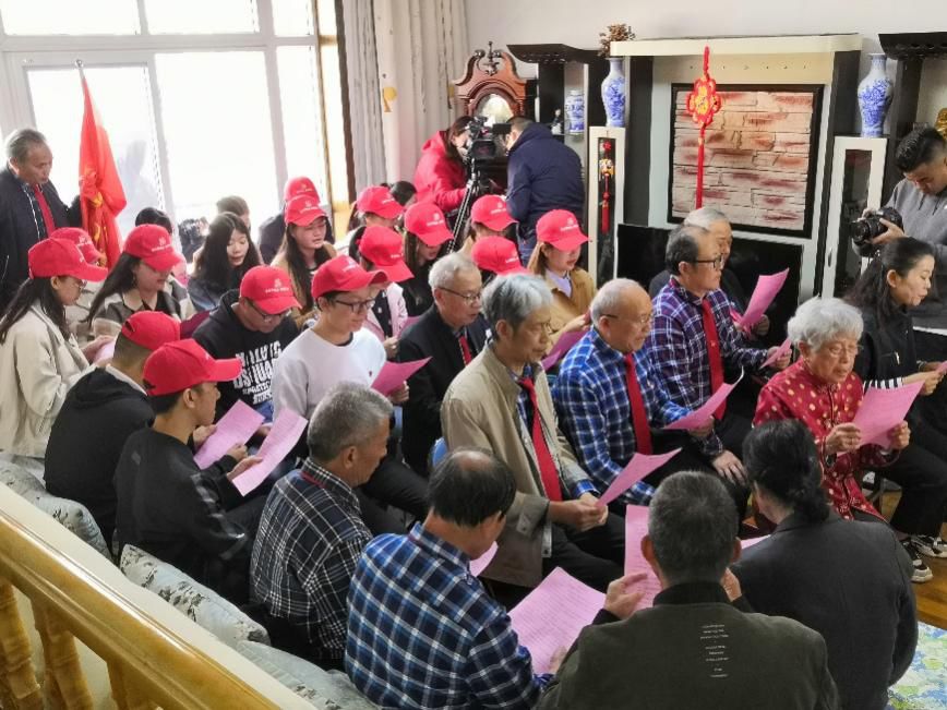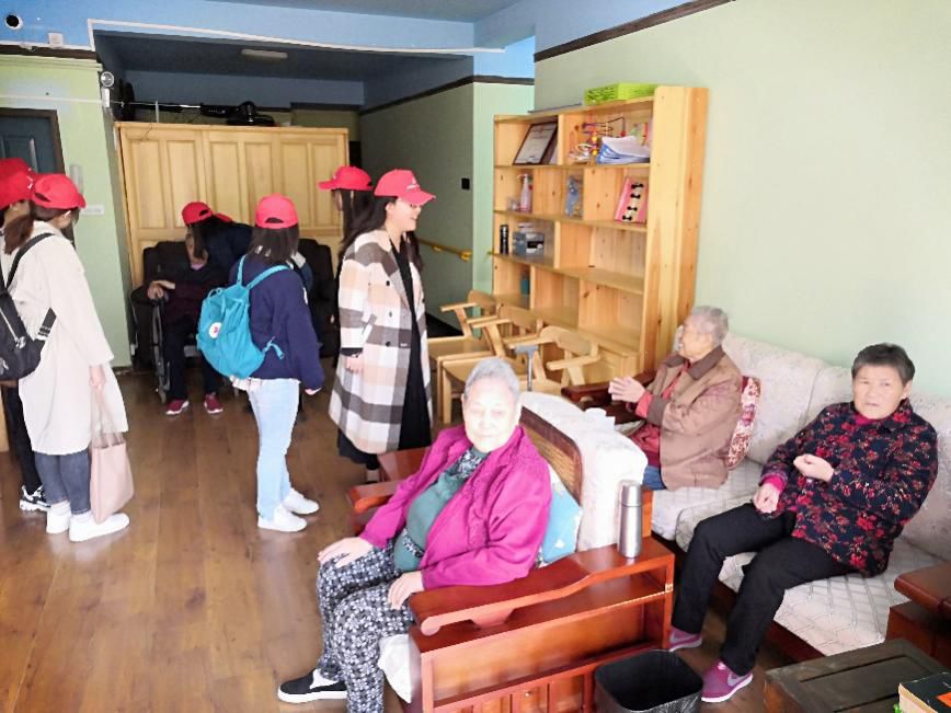 现场活动结束后,大家来到社区养老院开展志愿服务活动, 陪老人聊天,帮老人按摩,最后大家一起合唱了《映山红》和《我和我的祖国》给爷爷奶奶们听,最后大家一起祝福爷爷奶奶身体健康,结束了本次活动。