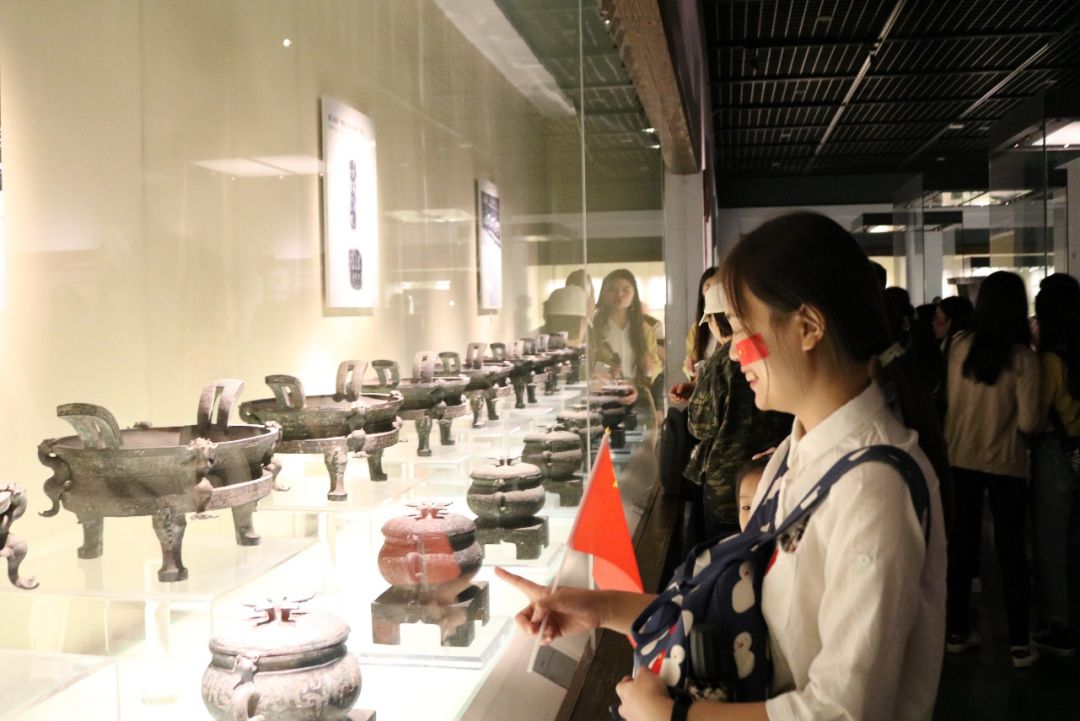 走进湖北省博物馆,仿佛进入时光隧道,荆山楚水的千年岁月扑面而来。同学们按馆藏布局,依次参观了曾侯乙、楚文化、梁庄王、郧县人、屈家岭、盘龙城、荆楚百年英杰等展厅。在一件件或大气庄重,或小巧精致,或历史久远,或意义独特的文物面前,同学们不时凝神观看、驻足良久。通过此次参观湖北省博物馆,同学们以曾侯乙编钟、越王勾践剑、元青花四爱图梅瓶、郧县人头骨四大镇馆之宝为切入点,对荆楚地区的历史文化有了更全面的了解,加深了对中华民族悠久灿烂的历史文化的认同和热爱。尤其是在“荆楚百年英杰”展厅,同学们参观了中国近代百年来自湖北省的英雄人物。为争取民族独立、人民解放,一大批湖北籍仁人志士前赴后继、不懈奋斗,让同学们更加深刻地体会到今日中国之繁荣昌盛来之不易,后人更要倍加珍惜,继往开来,接力前行。