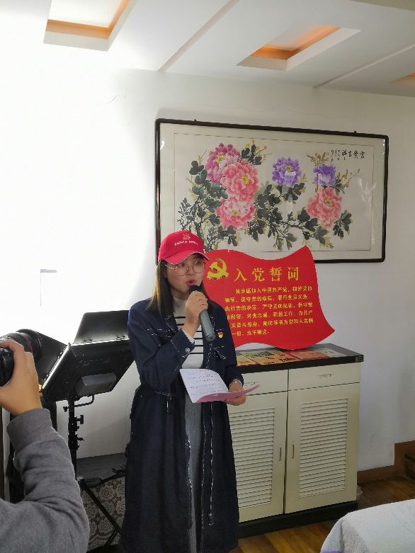 全体成员在社区流动老党员钱敏玲奶奶带领下重温入党誓词