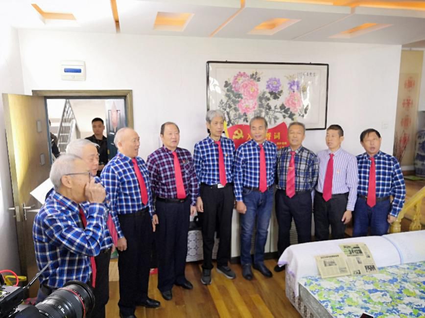 在党课和分享会过后,流动老党员组合“老格子”为大家现场合唱了《黄河大合唱》和《》两首曲目,老党员们精神抖擞,声如洪钟哦,在场的年轻党员们不由得赞叹,大家受到热情的红歌鼓舞,情不自禁的打起了节拍,在歌声中传承革命精神,展现了对党的深情和对祖国的热爱。