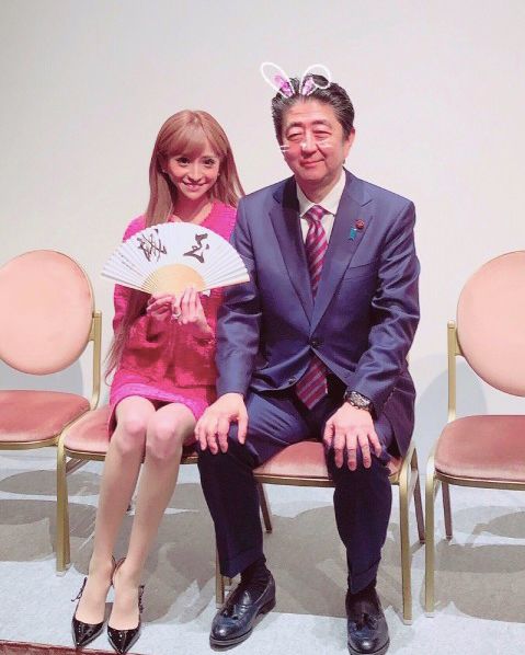 爱泽emiri在引退后,在自民党恳亲大会中与安倍晋三的合照还出圈过。由于拍照使用了SNOW滤镜,让照片中的安倍长出了兔子耳朵和胡须,爱泽emiri被众多网友抨击,称放出首相这样的照片太不严肃。