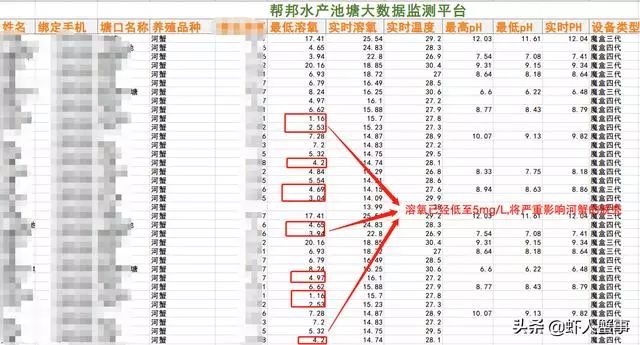 其中林老板的河蟹池塘在7月10日夜间的凌晨非常低,仅有0.80mg/L!经了解,林老板表示当天夜里有河蟹大面积的缺氧上草,但好在帮邦魔盒提前发出了预警,林老板及时采取行动,幸亏魔盒提前预警我及时的采取了措施,不然后果不堪设想!原来林老板表示最近连续下雨没有阳光,另外由于6月末水草的管理没做好,塘里有大量的烂草,并且水体比较浑浊。因此才造成了这次的河蟹的大面积的上草缺氧。