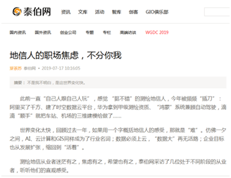 据泰伯网报道,此前一直“自己人跟自己人玩”,感觉 “挺不错”的测绘地信人,2019年被频频“插刀”:阿里买了千方、建了时空数据云平台,华为拿到甲级测绘资质、“鸿蒙”系统兼顾自动驾驶,滴滴“顺手”就把车站、机场的三维建模给做了……仿佛一夕之间,AI、云计算和GIS同样成为了行业名词,测绘地信从业者迷茫有之,焦虑有之,希望也有之。