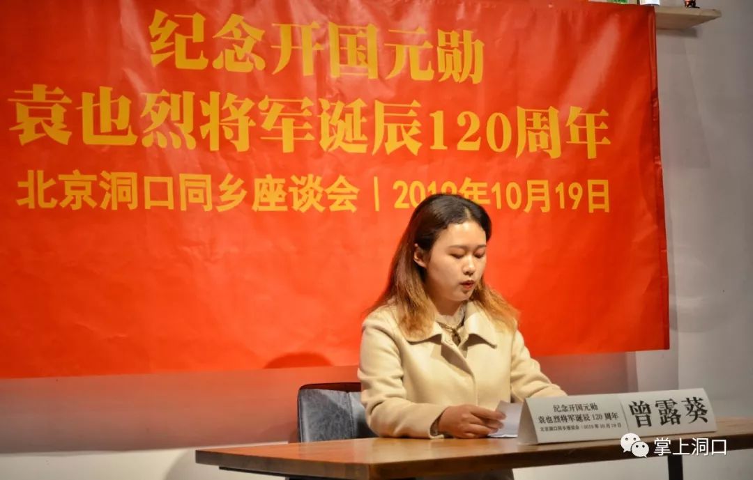 ▲同乡曾祥,北京师范大学的学生。他说道,“作为土生土长的洞口人,在洞口生活18年,现在是在京学子,很佩服袁也烈将军,他是毛主席的学生,很早就参加了革命,思想觉悟是我们的榜样。当然,袁也烈将军的历史,对洞口的发展有什么帮助,听了大家的发言,有一种茅塞顿开的感觉。以前从洞口去长沙要坐4-6个小时的大巴车,现在两个多小时,这说明我们洞口的发展已经进入了一个新时代。如何运用袁也烈将军的历史品牌,带动家乡的发展,这是我们要考虑的问题。虽然我现在不在洞口,但是根还在那里。”