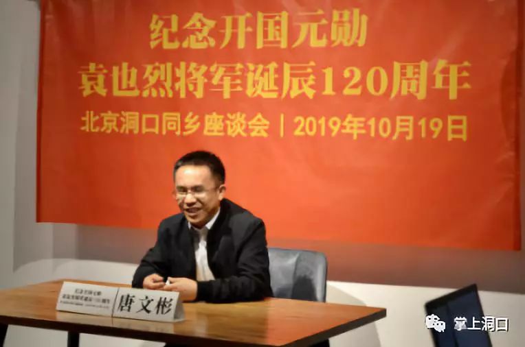 ▲同乡唐文彬,科技产品方面的营销专家。他说道,“袁也烈将军,和毛主席是同时代的革命家,为中国革命做出了很大的贡献。还有海军建设这块,也做了很多贡献。我们在这个影视文化行业的同乡,能不能拍一个关于袁也烈将军的影视片来,这样有助于大家对袁也烈将军的认识度更高一点。今天正好有同乡周后运撰写的《开国将军袁也烈》,还有不久的将来,袁也烈将军故居也会开放,过年的时候,一定带我的孩子看一下。”