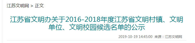 好 消 息2016-2018年度江苏省文明村镇、文明单位、文明校园候选名单公示