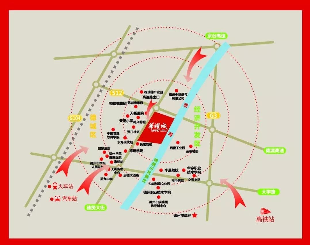 德州华耀城位于德州北城核心区,东面与经济技术开发区隔河相望;南面与德州老城区衔接相连;西面与运河开发区和河北景县相融相济;北面则背依河北吴桥和广大的京津冀地区,区位上得天独厚,交通上四通八达,是名副其实的商家必争之地和创富生财热土。德州华耀城作为冀鲁地区颇具代表性的产城一体化综合商贸物流项目,不但符合德州市的产业规划和城市发展规划,而且在京津冀协同发展和新旧动能转换的进程中优势尽显,魅力独彰。尤其是伴随着下一步深圳好百年家居开业在即、华耀城综合商贸区即将交付、乾龙智慧物流园的入驻、华耀城住宅版块即将盛大启动、萱蕙路大桥年底即将通车,德州华耀城将迎来新一轮的蓬勃发展期,届时德州华耀城更将实至名归,辉煌绽放。