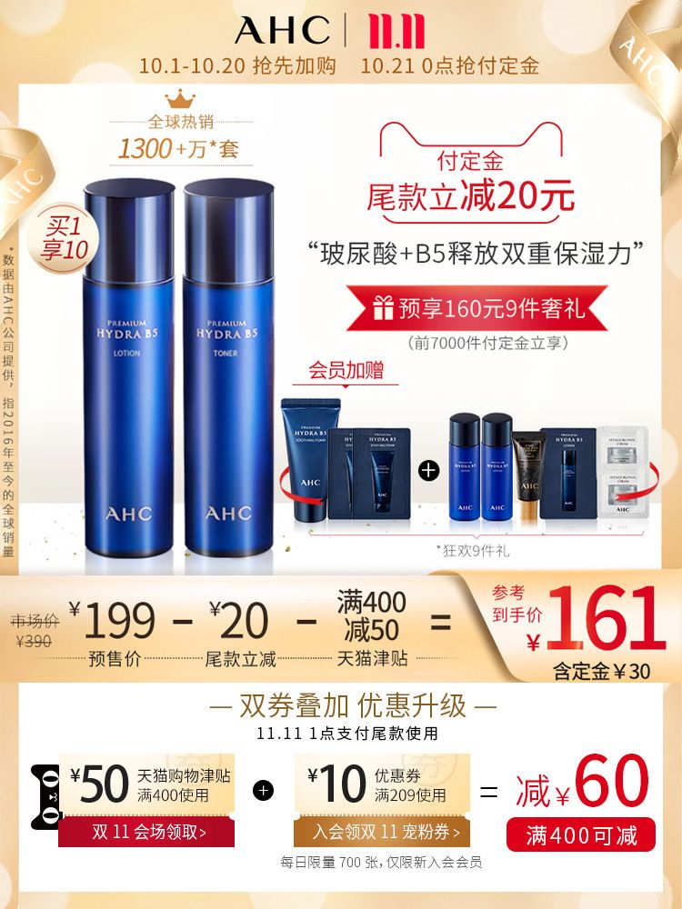 【10.21开抢】AHC官方旗舰店B5玻尿酸水乳套装补水保湿学生护肤品