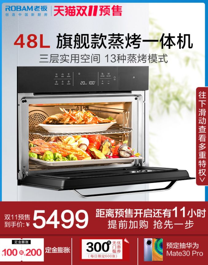 老板C973X嵌入式蒸烤一体机嵌入式蒸烤箱二合一蒸箱烤箱智能家用