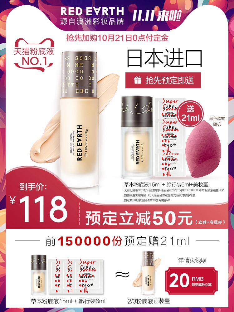 【10月21日0点开抢】日本进口redearth红地球养肤粉底液草本精华