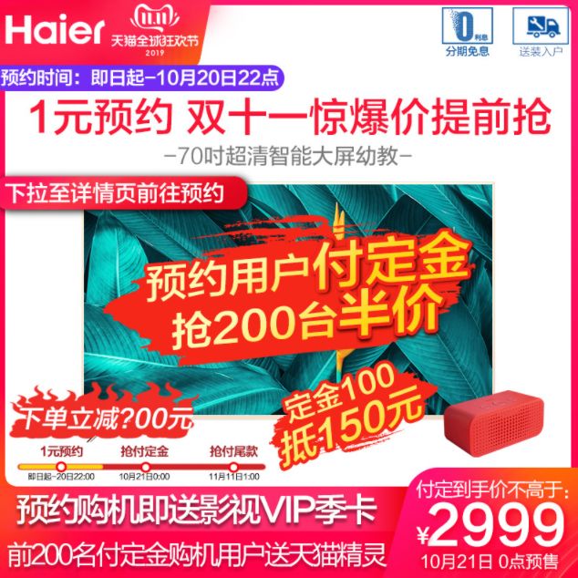 0.1元预定0-2点抢不限量半价,到手价3399!