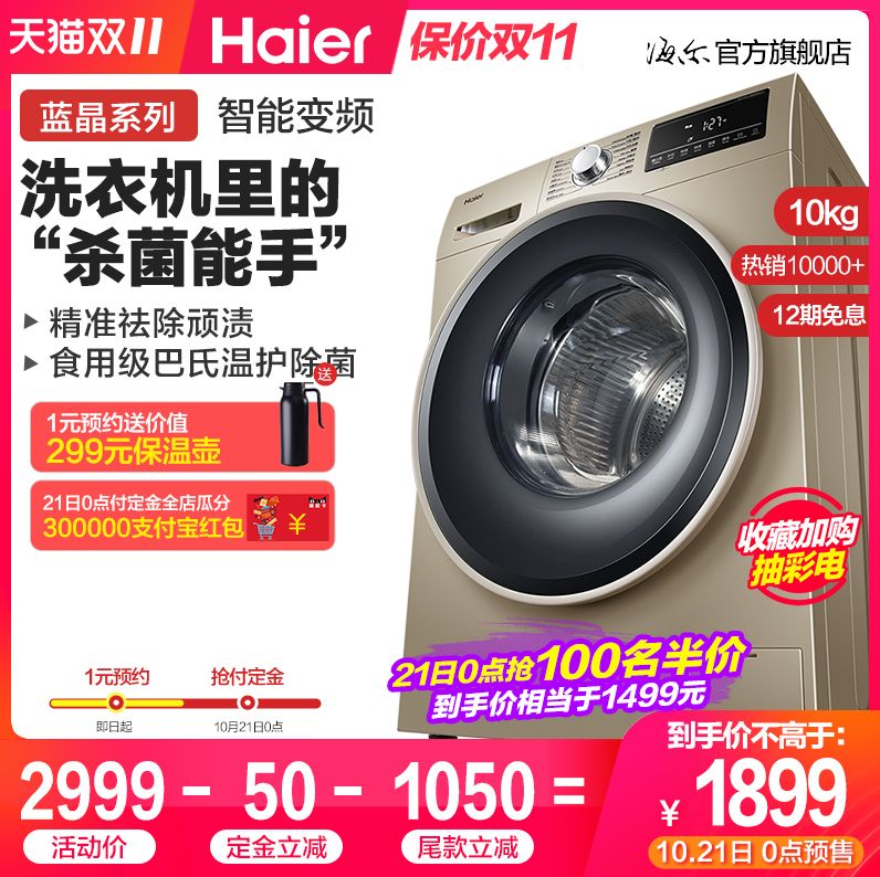 Haier/海尔 EG10012B939GU1 10公斤大容量巴氏杀菌变频滚筒洗衣机