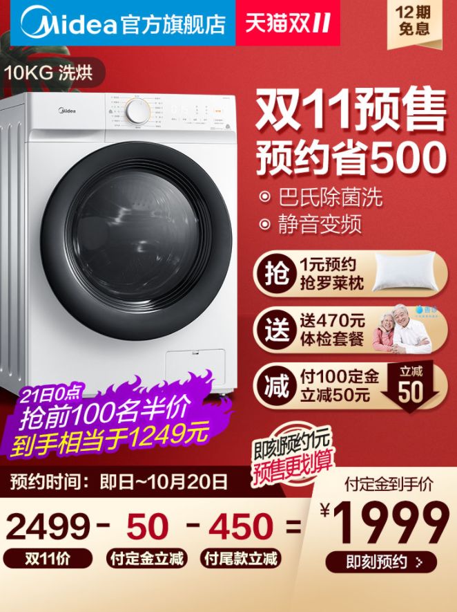美的10公斤KG洗衣机 全自动家用变频滚筒洗烘干一体机MD100V11D