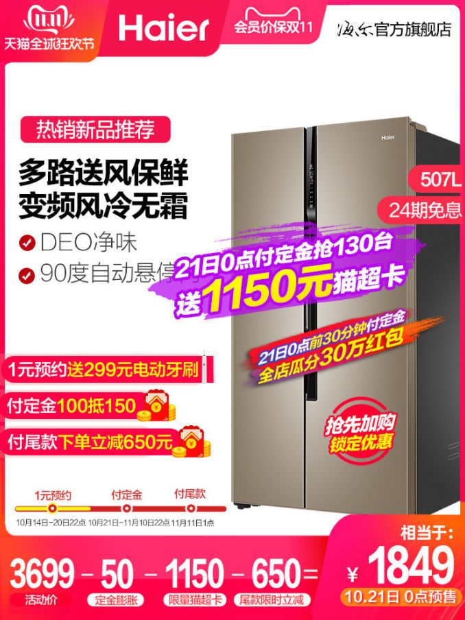 Haier/海尔 BCD-507WDPT 双变频风冷家用双开对开门无霜节能冰箱