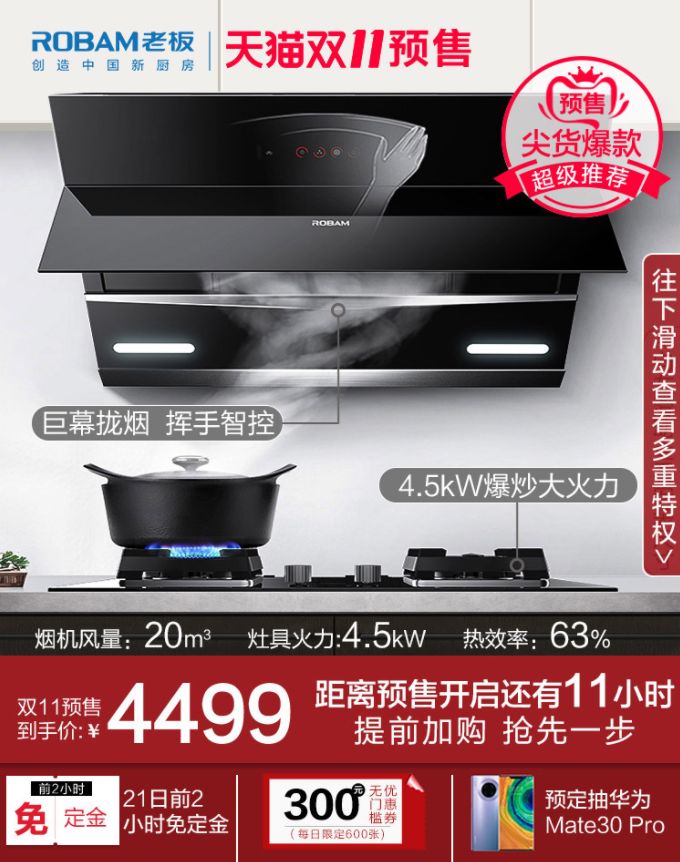 老板 27A5+37B0侧吸抽油烟机燃气灶套餐烟灶套餐烟机灶具套装组合