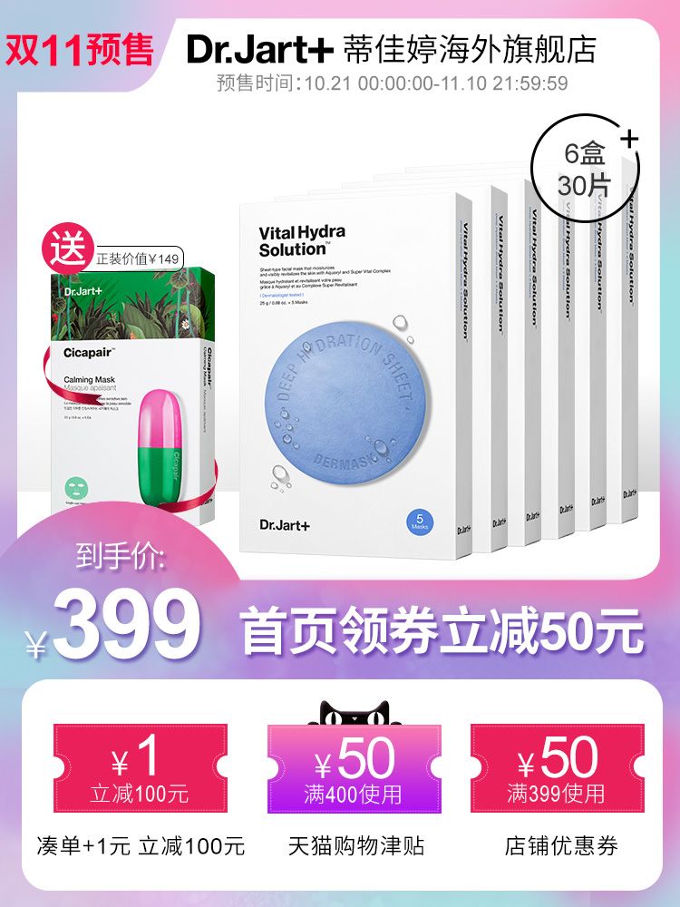 【双11预售】Dr.Jart+/蒂佳婷补水舒缓修复面膜蓝丸6盒积雪草1盒